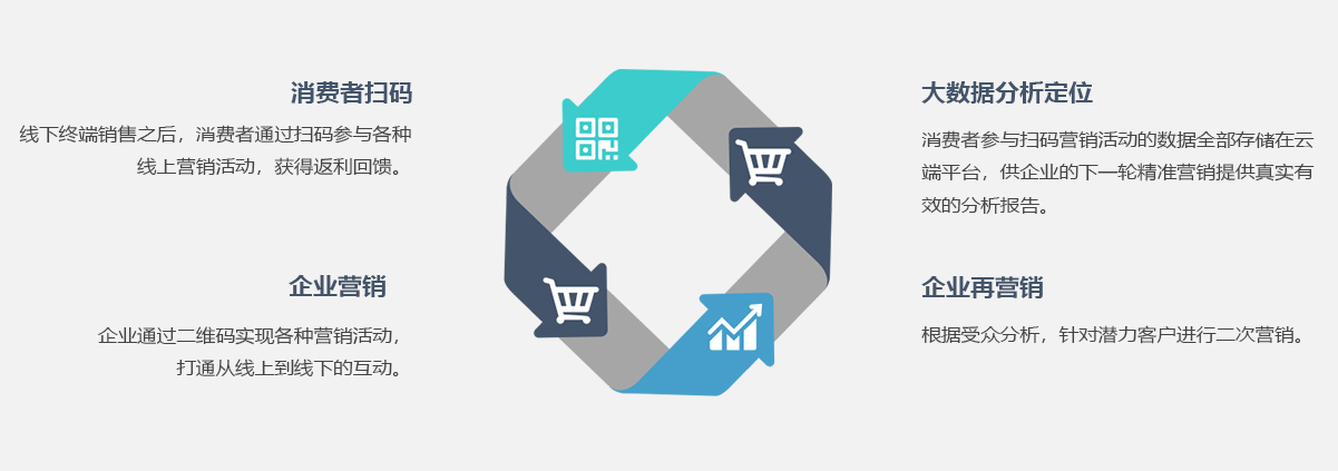 我們應用現代信息技術研發了移動大數據應用平臺、編碼系統和二維碼設計和編輯提排版系統,為客戶搭建一物一碼防偽、營銷、溯源、物流管控等系統解決方案,讓傳統品牌低成本用場景,幫助客戶接入物聯網。